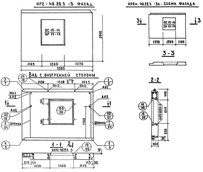 НР2л-40.29.3-3    Наружная стеновая панель рядовая по Серии 1.132-2.